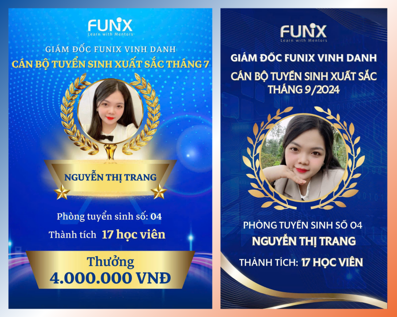 Không chỉ ghi dấu ấn trong lòng học viên, Trang còn được đồng nghiệp và quản lý đánh giá cao. “Trang luôn hoàn thành công việc với tinh thần trách nhiệm cao và là một trong những người đạt hiệu suất hàng đầu của đội ngũ tư vấn tuyển sinh tại FUNiX” – chị Thu Giang, Trưởng phòng Tuyển sinh FUNiX Ways chia sẻ – “Điều tôi trân trọng nhất ở Trang là sự chỉn chu trong từng quy trình và luôn đặt sự phát triển của học viên làm trung tâm trong mọi quyết định”.