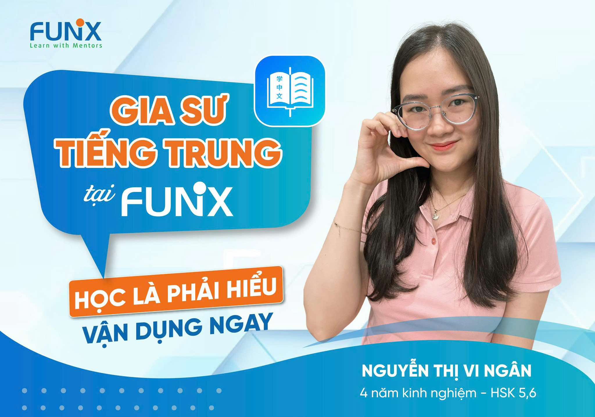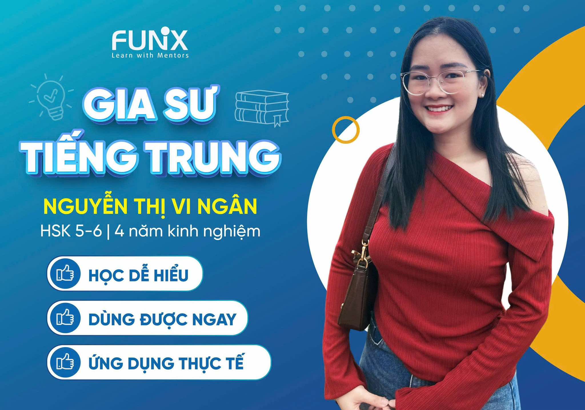 Gia sư tiếng Trung Vi Ngân giảng dạy tiếng Trung từ gốc, giúp học viên biết cách ứng dụng tiếng Trung vào đời sống một cách hiệu quả, chinh phục các kì thi HSK 3- 4- 5 dễ dàng hơn. Hiện cô là một trong những gia sư tiếng Trung được tín nhiệm tại FUNiX bởi sự nhiệt tình cùng phong cách giảng dạy dễ hiểu, ôn luyện thi có chiến lược.