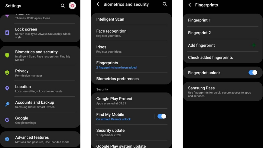 Bạn cũng có thể thử cài đặt lại vân tay của mình. Để thực hiện, hãy vào cài đặt của bạn và nhấp vào phần sinh trắc học hoặc bảo mật, như được hiển thị bên dưới trên thiết bị Android.
