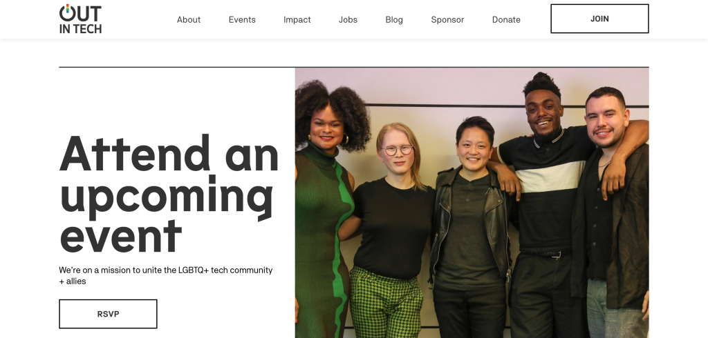 Tổ chức phi lợi nhuận thuộc nhóm lớn nhất thế giới với các nhà lãnh đạo công nghệ thuộc LGBTQ+. Họ đã tạo cơ hội cho 40.000 thành viên thăng tiến trong sự nghiệp, phát triển mạng lưới và tận dụng công nghệ để thay đổi xã hội. Chương trình Out in Tech Mnetorship của tổ chức này đã kết nối giới trẻ LGBT với các chuyên gia công nghệ để cung cấp kỹ năng, chuyên môn và cơ hội việc làm cho người trẻ.