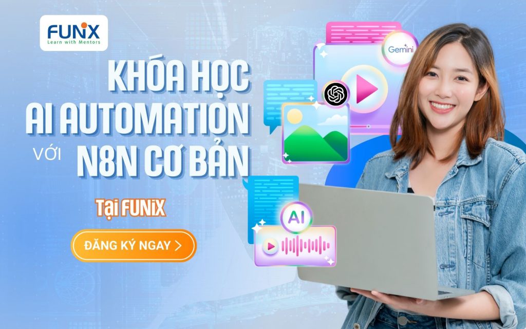 Đừng để cơ hội làm chủ tương lai công nghệ trôi qua! Hãy tham gia khóa học AI Automation với N8N cơ bản tại FUNiX ngay hôm nay để biến những ý tưởng tự động hóa thành hiện thực, nâng tầm sự nghiệp của bạn. Với sự đồng hành của FUNiX, bạn sẽ không chỉ học mà còn kiến tạo giá trị mới cho chính mình và cộng đồng. Bắt đầu hành trình đầy cảm hứng của bạn ngay hôm nay! Cùng nhau, chúng ta sẽ kiến tạo một thế giới làm việc hiệu quả và sáng tạo hơn!