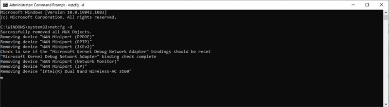 - Trong Dấu nhắc Lệnh, gõ netcfg -d.