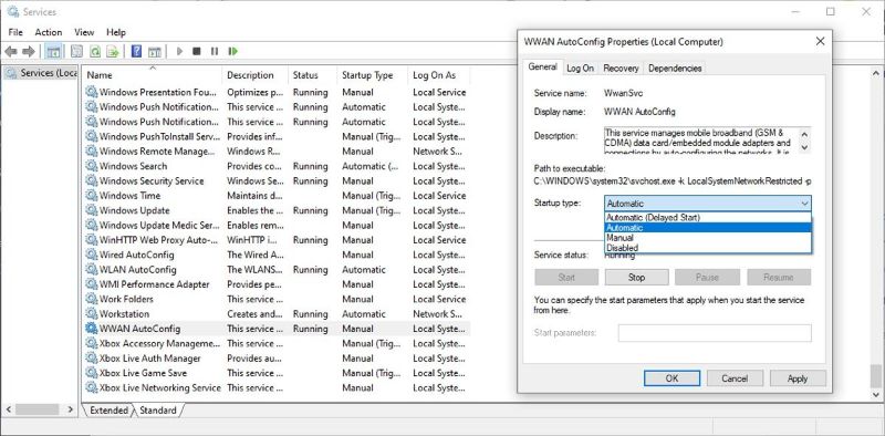 - Trong menu Dịch vụ (services), tìm và mở WWAN AutoConfig.