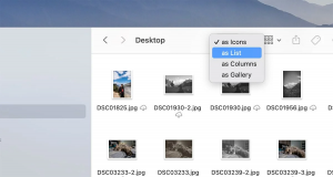 Nếu các file bạn muốn chọn nằm liền kề, việc chọn chúng rất dễ dàng. Phương pháp này chỉ có hiệu quả trong chế độ xem List (danh sách), Columns (cột), or Gallery (thư viện) trong Finder. Trong Finder, đi đến vị trí của các file và chọn chế độ xem List, Columns hoặc Gallery từ View icon (biểu tượng Chế độ xem).