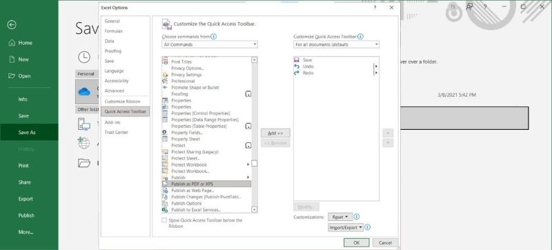 Nếu bạn thường xuyên cần lưu bảng tính Excel dưới dạng PDF, bạn có thể thêm lệnh Xuất bản dưới dạng PDF hoặc XPS (Publish as PDF or XPS) vào thanh công cụ. Đây là cách bạn có thể làm điều đó: