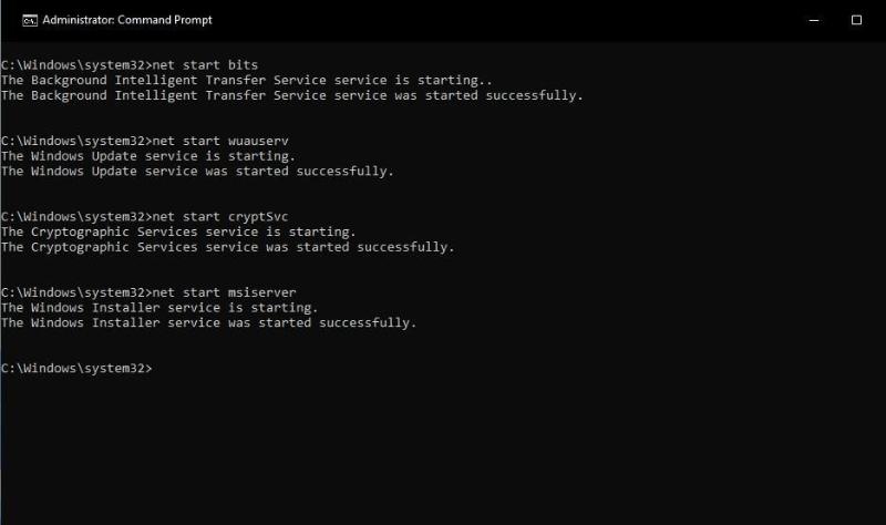 11. Quay lại Dấu nhắc Lệnh và thực hiện các lệnh riêng biệt này để khởi động lại các dịch vụ bị vô hiệu hóa.
