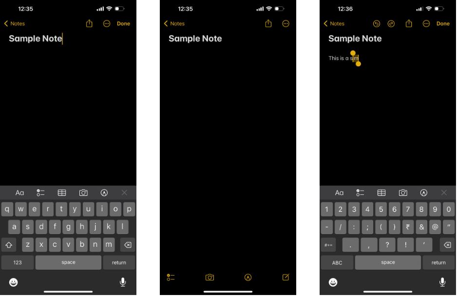 Một cử chỉ khác mà bạn có thể sử dụng là chạm bằng ba ngón tay. Thao tác này sẽ hiển thị lời nhắc về các nút hành động, bao gồm các nút để hoàn tác, làm lại, cắt, sao chép và dán. Bạn có thể sử dụng nút hoàn tác để thực hiện hành động hoàn tác. Điều này rất hữu ích trong một số trường hợp, chẳng hạn như nếu bạn đang tạo hoặc định dạng bảng trong Ghi chú và muốn hoàn tác một thay đổi.