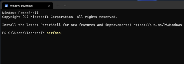 Nếu bạn sử dụng Windows Terminal để khởi chạy ứng dụng hệ thống, lệnh perfmon hoạt động với cả Command Prompt và Windows PowerShell. Làm theo các bước sau để khởi chạy công cụ Giám sát hiệu suất bằng Windows Terminal.