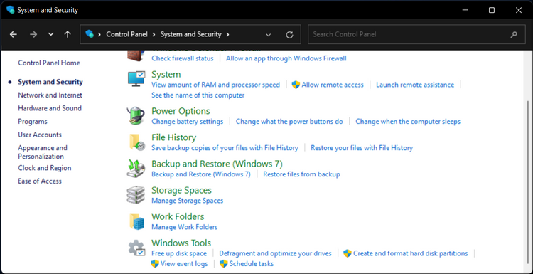 - Trong Pa-nen điều khiển, nhấp vào System and Security.