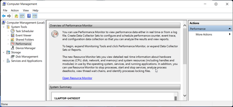 - Tiếp theo, nhấp vào Performance để mở ứng dụng trong cửa sổ Quản lý máy tính.