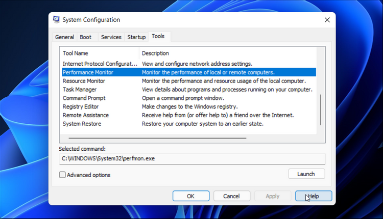 6. Khởi chạy Performance Monitor trong Windows 11 Sử dụng System Configuration
