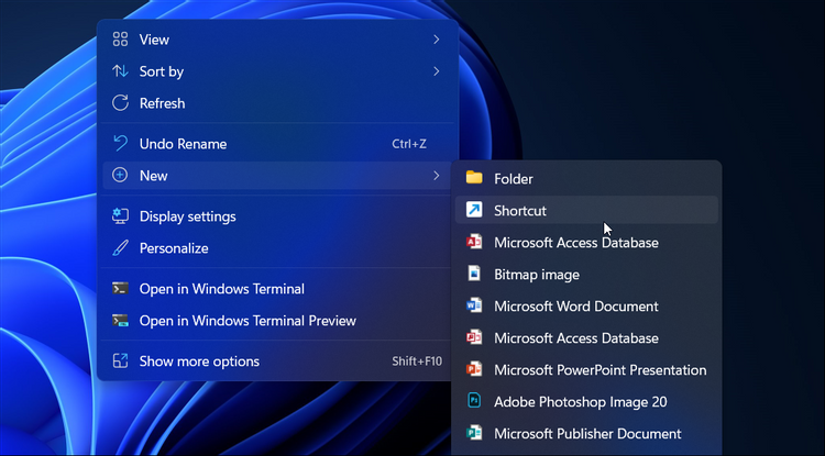 - Tiếp theo, đi tới New > Shortcut.
