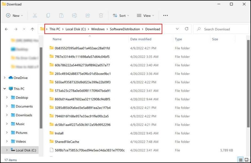 Một giải pháp khác là xóa nội dung của thư mục Phân phối Phần mềm. Thư mục này chứa các tệp tạm thời có thể cản trở quá trình của Media Creation Tool.