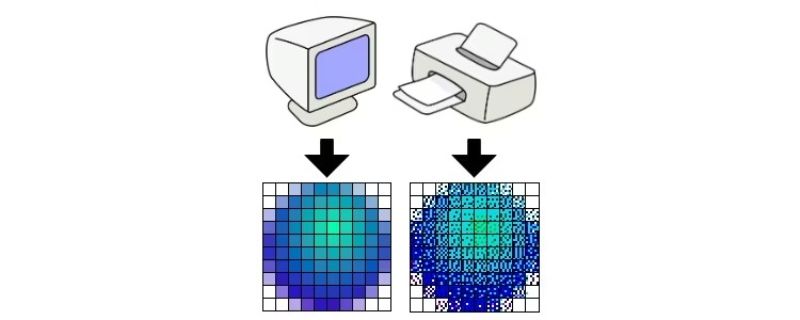 Khi máy in tạo bản sao vật lý của hình ảnh, máy in sẽ không đóng dấu tài liệu như máy in. Thay vào đó, nó sử dụng bản thiết kế kỹ thuật số của tài liệu bitmap, đặt ra hàng triệu vết mực nhỏ ở bất cứ nơi nào tài liệu cho biết cần có âm thanh.