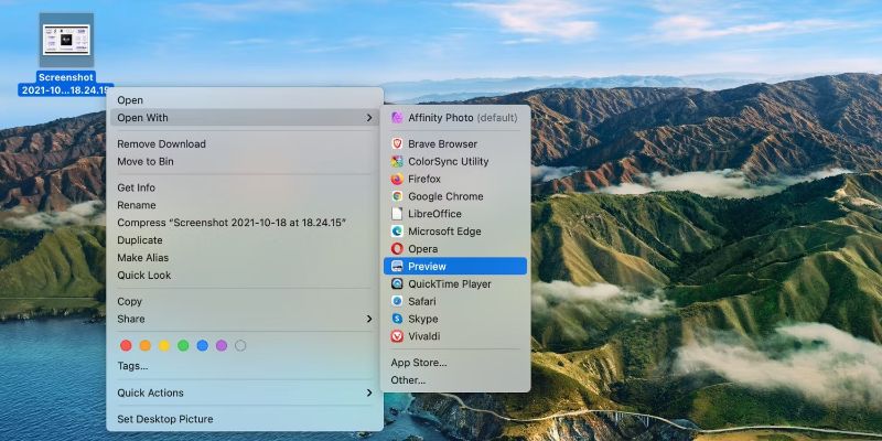 - Chọn Open With (Mở bằng), sau đó chọn Preview (Xem trước).