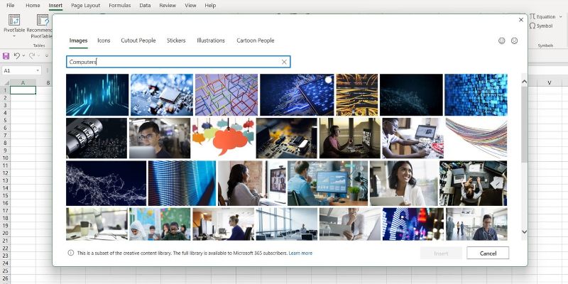2. Cách chèn ảnh từ thư viện hình ảnh của Microsoft trong Excel