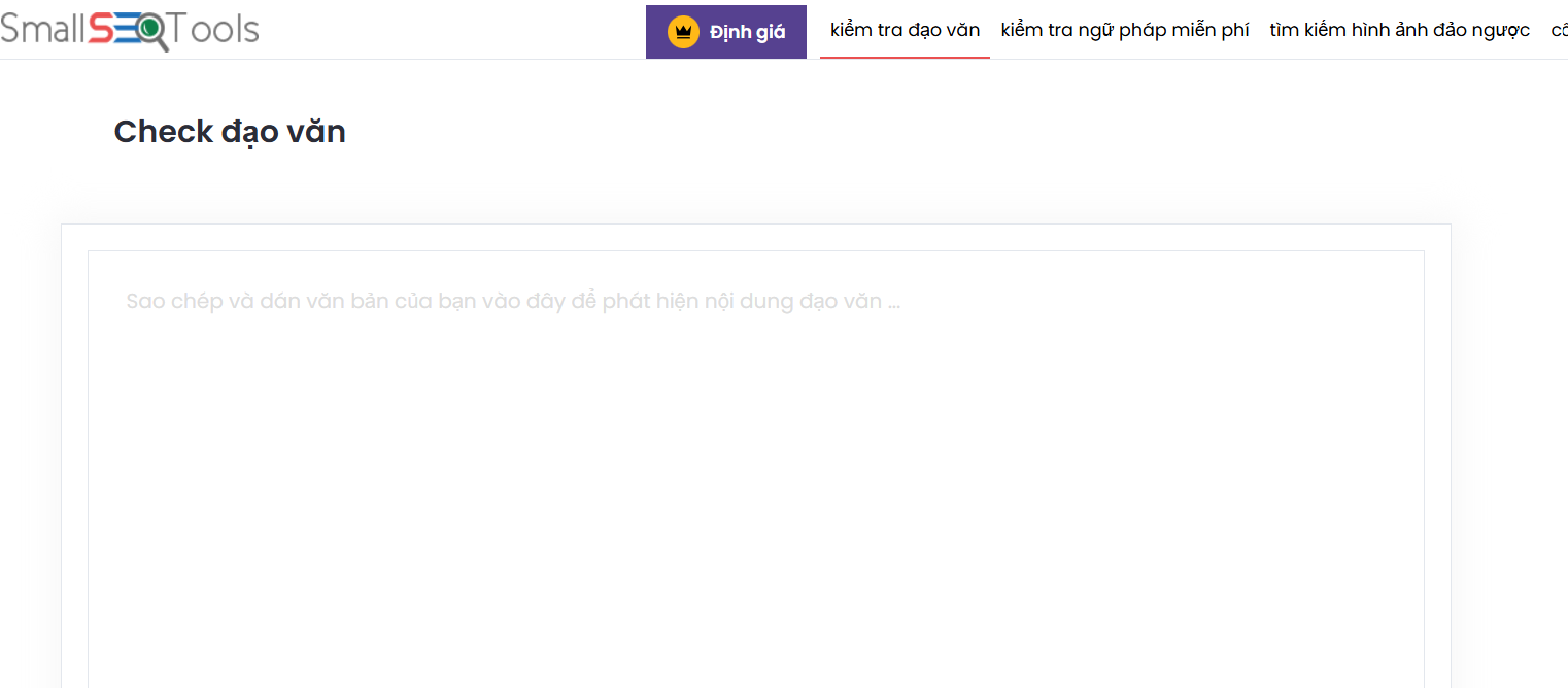 Kiểm tra đạo văn là một bước quan trọng trong việc đảm bảo tính chính xác và độc đáo của nội dung, đặc biệt là đối với những người sáng tạo nội dung, các nhà văn, blogger, hoặc những người làm trong lĩnh vực SEO. Small SEO Tools là một công cụ phổ biến và dễ sử dụng giúp bạn kiểm tra xem văn bản của mình có bị sao chép từ các nguồn khác hay không. Công cụ này miễn phí và rất hiệu quả trong việc phát hiện đạo văn, giúp bạn duy trì tính xác thực và uy tín trong công việc của mình. Dưới đây là hướng dẫn chi tiết về cách sử dụng công cụ kiểm tra đạo văn của Small SEO Tools.