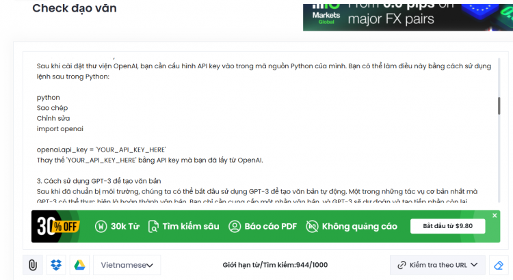 Công cụ kiểm tra đạo văn này là một giải pháp rất hữu ích, đặc biệt cho các nhà văn, sinh viên, và những người làm nội dung để đảm bảo chất lượng của bài viết, đồng thời tránh vi phạm bản quyền.