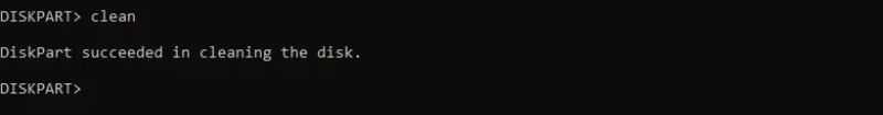 Trước khi định dạng lại, hãy đảm bảo bạn đã sao lưu dữ liệu của mình. Sau đó, gõ clean và nhấn enter để xóa tất cả dữ liệu khỏi ổ đĩa của bạn. Khi DiskPart đã dọn dẹp ổ đĩa thành công, bạn sẽ thấy thông báo sau trên màn hình.