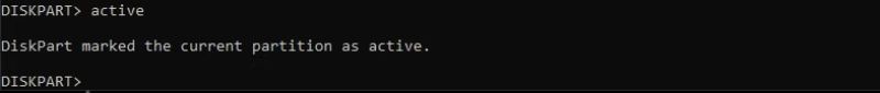 Sau khi phân vùng, hãy nhớ kích hoạt phân vùng vì máy tính chỉ có thể sử dụng một phân vùng đang hoạt động. Vì vậy, hãy gõ active và nhấn enter để biến phân vùng bạn vừa tạo thành phân vùng đang hoạt động (active).