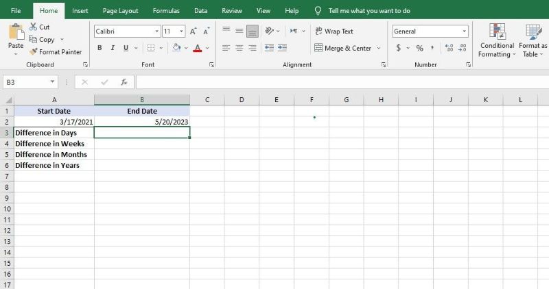 Trước khi bắt đầu, hãy đảm bảo rằng các ô chứa giá trị ngày tháng được đặt ở định dạng date (ngày tháng) và các ô đầu ra đặt ở định dạng number (số).