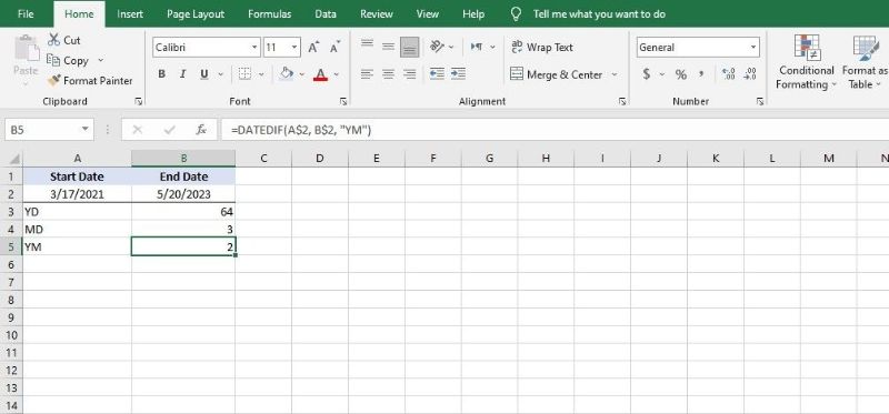 Bảng tính ở trên chứng minh điểm này. YD giả định rằng các ngày trong cùng một năm (Y) và đếm số ngày chênh lệch (D). MD giả định rằng hai ngày là cùng năm cùng tháng (M) và tính chênh lệch theo ngày (D). YM giả định rằng các ngày trong cùng một năm (Y) và tính chênh lệch theo tháng (M).