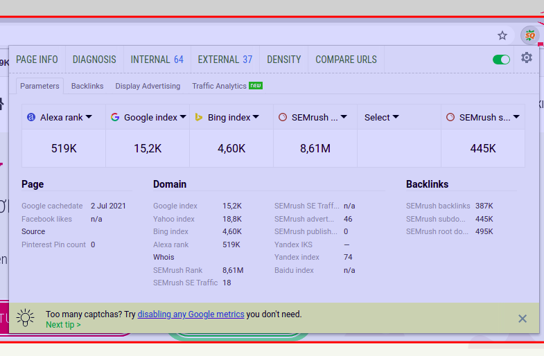 - SEObar: Thanh này xuất hiện trên trang đích bạn đang truy cập và cung cấp cho bạn các tham số cho chính trang mà bạn đang tiến hành phân tích.