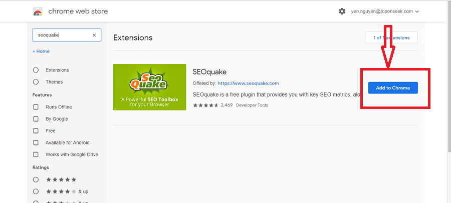- Bước 2: Tìm kiếm “Seoquake” và chọn cài đặt tiện ích.