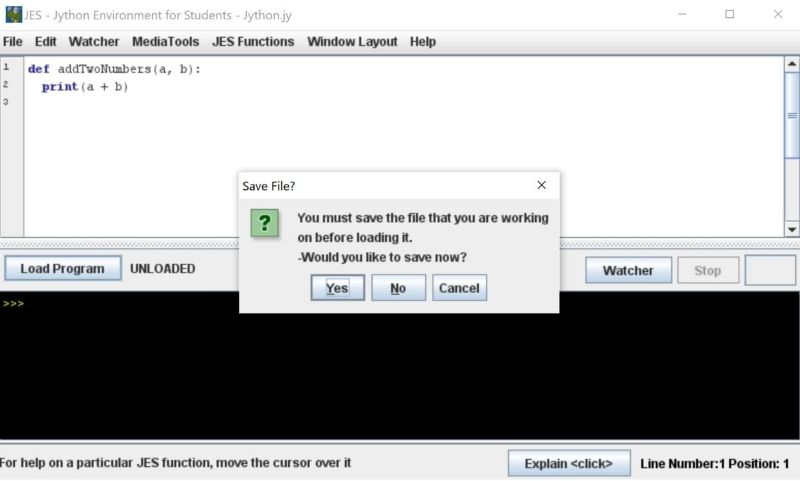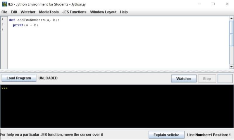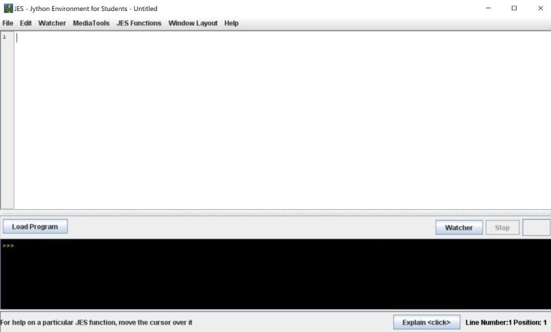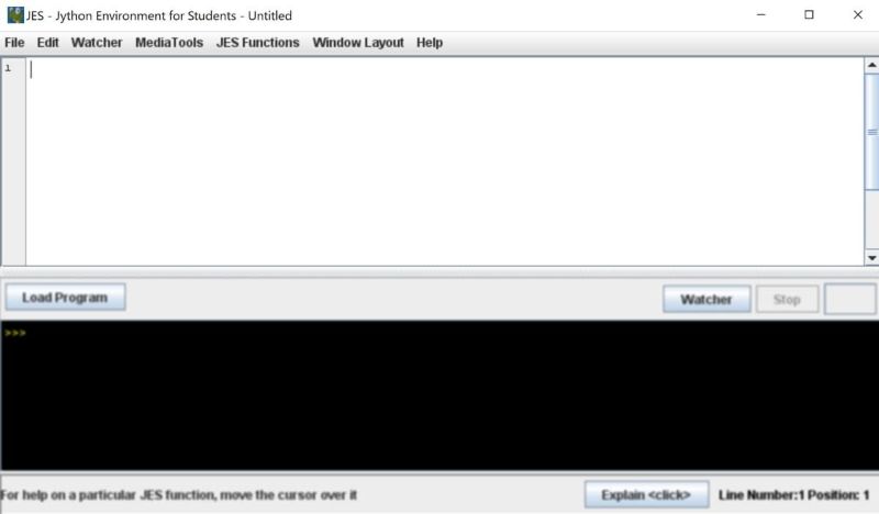 Giao diện JES bao gồm trình soạn thảo văn bản và dấu nhắc lệnh (command prompt) riêng, vì vậy bạn có thể viết mã và chạy tất cả ở một nơi. Điều này giúp JES trở thành một nền tảng tốt cho người mới bắt đầu lập trình.