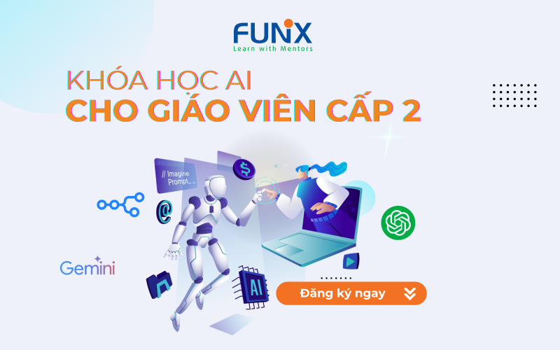 Với mong muốn đồng hành cùng đội ngũ giáo viên Việt Nam trong hành trình chuyển đổi số, FUNiX – đơn vị tiên phong trong đào tạo công nghệ trực tuyến – đã thiết kế khóa học AI dành riêng cho giáo viên cấp 2, hướng tới tính ứng dụng, dễ học, dễ triển khai trong lớp học.