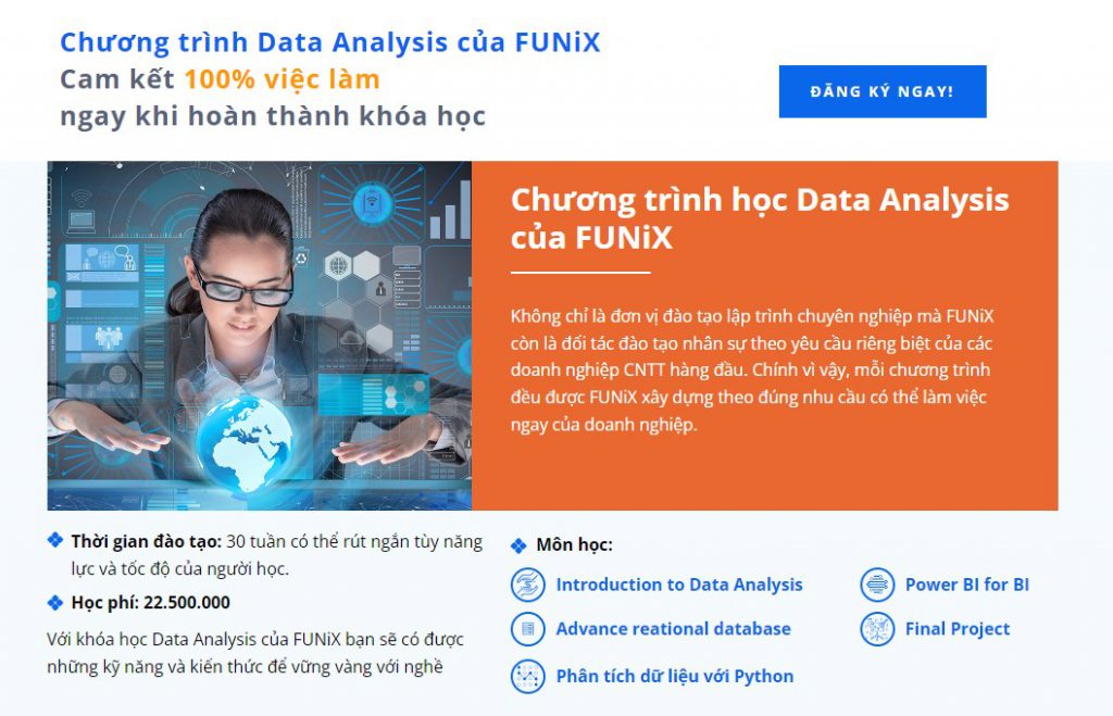 Nếu bạn tìm hiểu học phân tích dữ liệu ở đâu, hãy thử tìm hiểu chương trình học lập trình phân tích dữ liệu FUNiX tại đây: