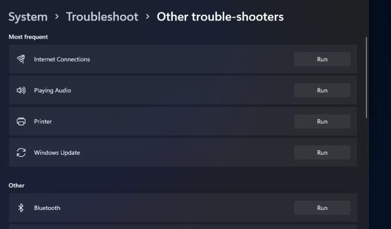 - Nhấp vào Trình khắc phục sự cố khác (Other trouble-shooters) để truy cập các tiện ích khắc phục sự cố.