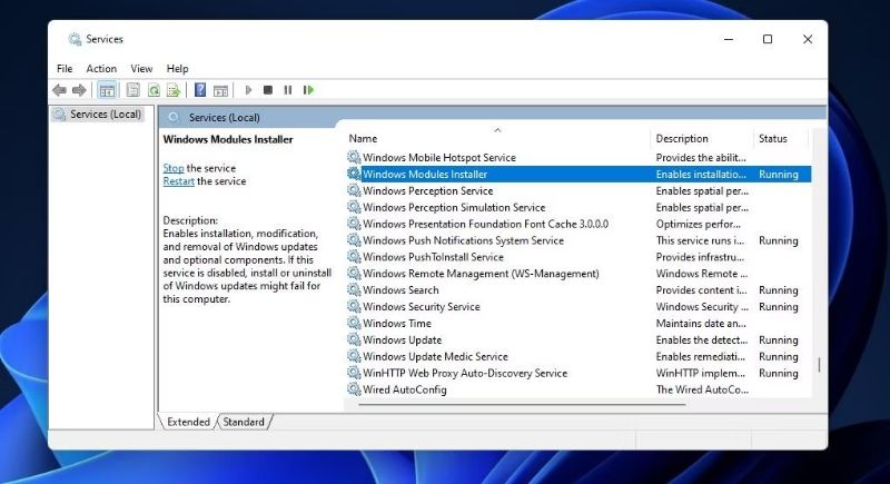 Windows Update có một số dịch vụ phụ thuộc cần được kích hoạt và chạy. Các vấn đề cập nhật Windows 11 22H2 có thể sẽ phát sinh nếu các dịch vụ này bị tắt. Hãy đảm bảo rằng các dịch vụ Windows Module Installer, BITS và CryptSvc được bật, theo các bước sau: