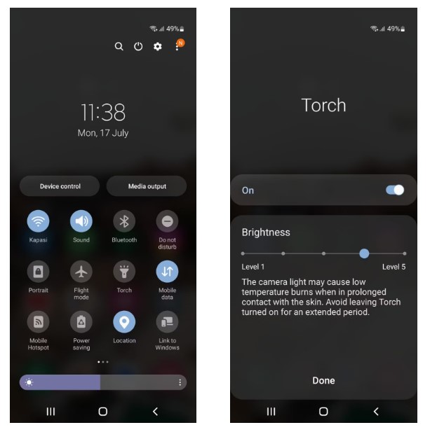 Chỉnh độ sáng đèn pin trên điện thoại Samsung Galaxy