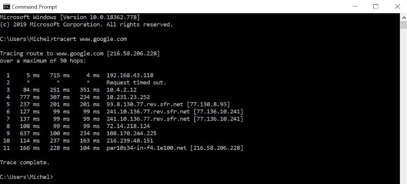 Cách sử dụng trên hệ điều hành Windows cũng tương tự, ngoại trừ chức năng được gọi là “tracert” thay vì Traceroute.