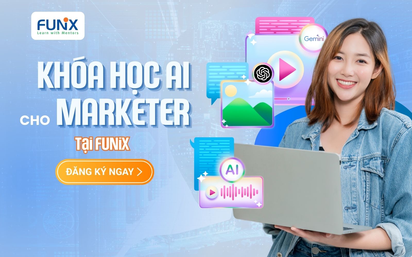 👉 Đăng ký ngay khóa học “Trọn bộ công cụ AI cho Marketer từ A-Z” tại FUNiX để làm chủ công nghệ, tăng tốc sự nghiệp, và trở thành marketer thế hệ mới mà doanh nghiệp nào cũng muốn có trong đội ngũ của họ.