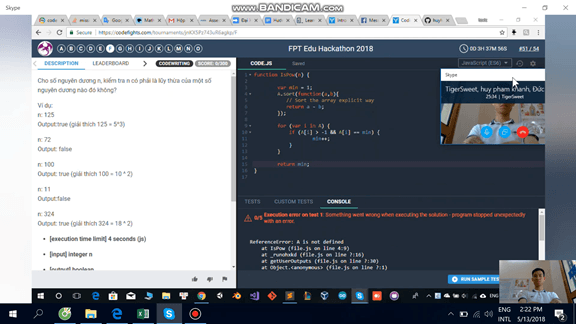 Chiều ngày 13/5/2018, 3 đội FUNiX đã hoàn thành phần thi codefights. Trong vòng 4 tiếng, từ 14h-18h, mỗi đội phải giải tổng cộng 15 bài, vòng thi nhằm đánh giá kỹ năng lập trình và kiến thức về thuật toán.