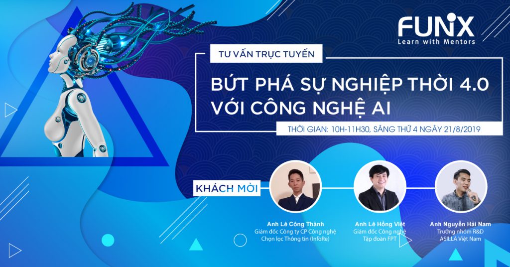 Đứng trước thực tế này,  FUNiX – đơn vị cung cấp nhiều khóa đào tạo công nghệ cao về AI và Khoa học dữ liệu sẽ tổ chức buổi giao lưu trực tuyến với chủ đề “Bứt phá sự nghiệp thời 4.0 với công nghệ AI” vào 10h sáng ngày 21/8/2019 trên website trường. Buổi tư vấn chia sẻ những thông tin cập nhật trong ngành, cũng như giải đáp mọi thắc mắc của độc giả xung quanh việc cơ hội việc làm, cách chuẩn bị, học tập để chiếm lĩnh cơ hội ngành AI.