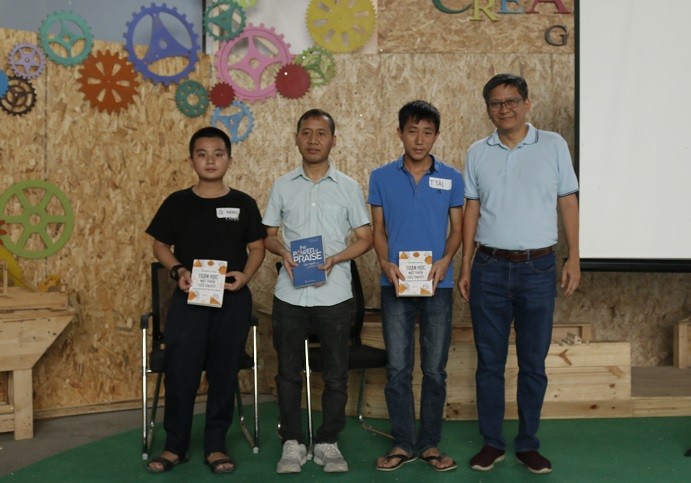 Nội dung tiếp theo – Tôn vinh – cũng giành được sự tán thưởng rất lớn của người tham dự. Những xTer từ trong Nam đến ngoài Bắc với thành tích đặt nhiều câu hỏi nhất, hoàn thành môn học sớm nhất… lần lượt được Hannah Bùi Hải Lý kể tên. (Từ trái qua phải) Nổi bật nhất là xTer Phạm Quang Minh (2007) và Đoàn Tuấn Khôi (1985) xuất sắc hoàn thành sớm Chứng chỉ và nhận học bổng “Học nhanh – Hoàn tiền”, bạn Nguyễn Tiến Tài nhận giải Top Practitioner of the Month (TPM) trong tháng 6.