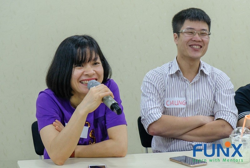 Chị Nguyễn Thị Phương Thảo (1983), hiện đang học CC1, và từng học Xây dựng và hiện giờ đang làm về văn phòng. Chị Thảo học FUNiX để tìm hiểu thêm về Lập trình, nếu có cơ hội tốt có thể chuyển nghề. Bên cạnh chị là xTer Lê Văn Chung (1987), hiện đang công tác tại Viettel, và tham gia khóa học Blockchain tại FUNiX được 1 tuần với mong muốn sở hữu kiến thức để bổ trợ trong công việc hiện tại.