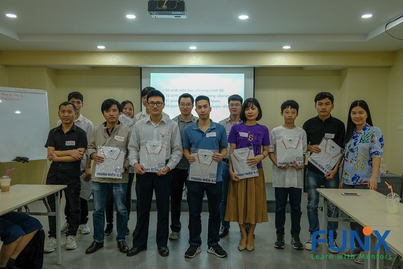 Sau phần chia sẻ của sinh viên, chị Lê Minh Đức – Giám đốc Thương mại FUNiX trao áo đồng phục cho sinh viên mới nhập học trong tháng 3. Tại buổi offline tháng 4 tại Hà Nội có 12 bạn xTer mới tham dự.
