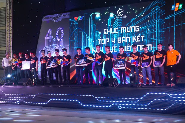 4 đội thi chiến thắng nhận hoa và giấy chứng nhận từ GĐ điều hành FPT HCM Nguyễn Tuấn Hùng và GĐ Công nghệ FPT – Trưởng ban tổ chức cuộc thi – anh Lê Hồng Việt.