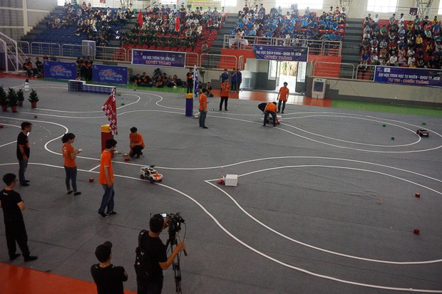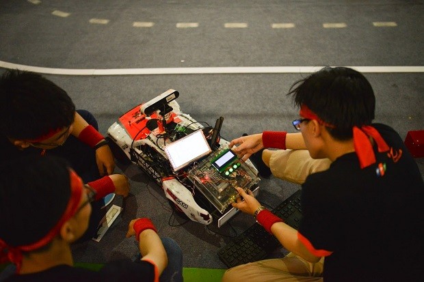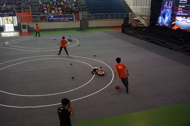 Khác với vòng loại trường, các thí sinh cần quan tâm nhiều đến phần cứng của xe, thay vì chỉ chú trọng vào lập trình như vòng loại trường. Ảnh: Anh Dũng.