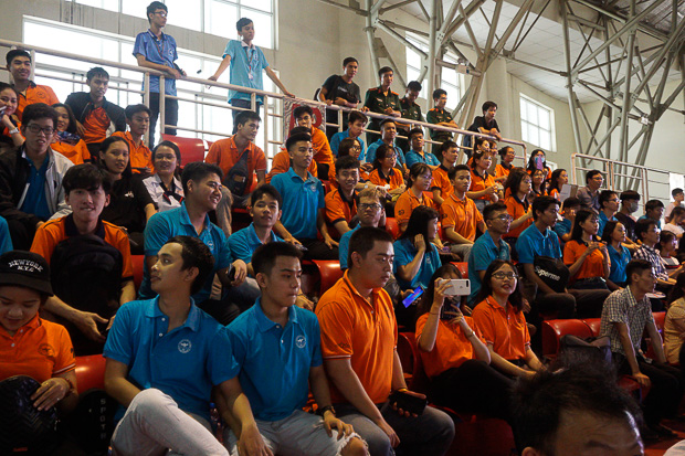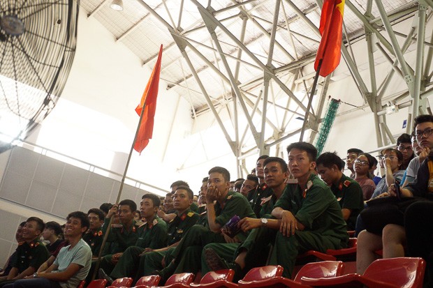 Khán giả hồi hộp theo dõi các lượt thi đấu trên sân. Trong khi Đại học Bách khoa TP HCM và Đại học Hồng Lạc có đội cổ vũ hùng hậu và náo nhiệt, sinh viên trường Thông tin liên lạc (Nha Trang), trong trang phục áo lính, âm thầm theo dõi trận đấu và cổ vũ cho đội nhà. Đội SQ26 bật mí, môi trường quy củ theo phong cách quân đội khiến sinh viên trường có tính cách điềm tĩnh đặc biệt.