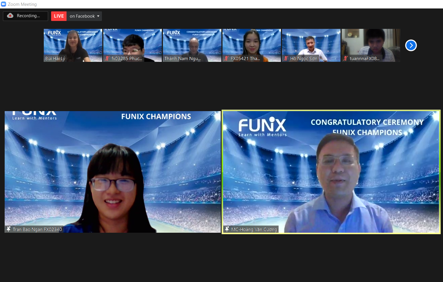 Lễ tôn vinh tháng 7 với chủ đề FUNiX Champions (những nhà vô địch của FUNiX) được tổ chức vào tối ngày 8/7/2021 vừa qua vinh danh gần rất nhiều gương mặt với các thành tích ấn tượng như hoàn thành Chứng chỉ, liên tiếp qua môn với “vận tốc ánh sáng”, tích cực góp ý hoàn thiện học liệu nhà trường… Cùng gặp gỡ các bạn ấy nhé.